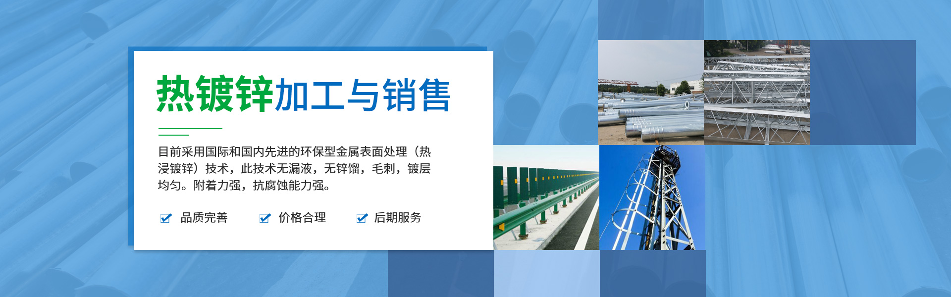 采用國際和國內先進的環保型金屬表面處理(熱浸鍍鋅)技術,此技術無漏液,無鋅餾,毛刺,鍍層均勻。附著力強,抗腐蝕能力強,曾為我國電力,公路,高鐵,通訊,燈桿等大型金屬表面防腐工程加工產品